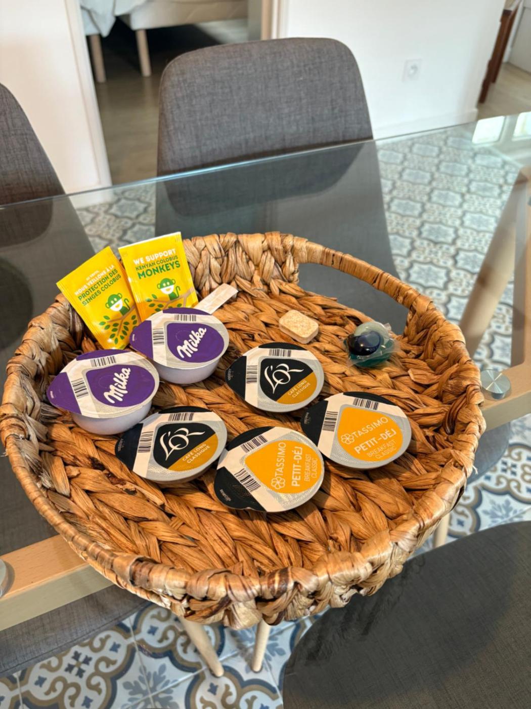 Two-Bedroom Apartment. The air-conditioned apartment has 2 bedrooms and 1 bathroom with a shower and a hairdryer. Guests can make meals in the kitchen that features a stovetop, a refrigerator, a dishwasher and kitchenware. The apartment features parquet floors, a seating area with a flat-screen TV, a washing machine, a coffee machine, as well as a dressing room. The unit has 3 beds.