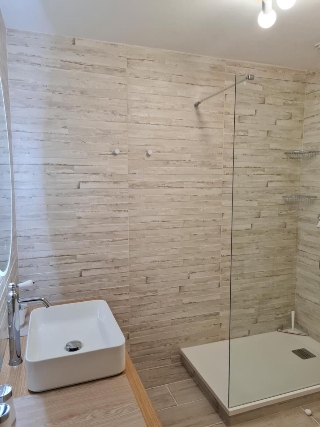 The holiday home is composed of 3 bedrooms, a fully equipped kitchen, and 2 bathrooms. A flat-screen TV is featured.