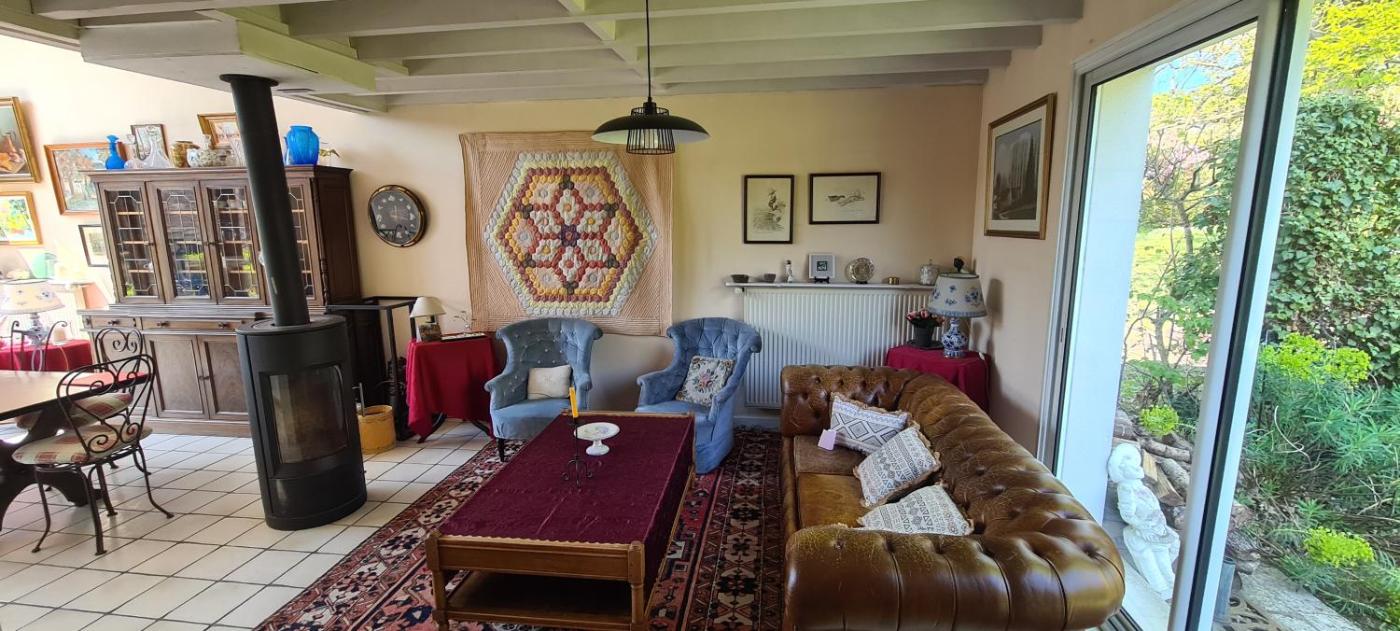 The guest house with a terrace and garden views has 2 bedrooms, a living room, a flat-screen TV, an equipped kitchen with a dishwasher and an oven, and 1 bathroom with a shower. Guests can enjoy an ambient stay in their soundproof room with tiled floors and a fireplace. The property has an outdoor dining area.